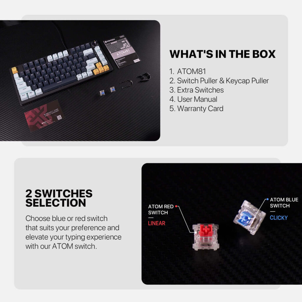 Available Switch – Red (Soft Linear Keys) Blue (Clicky Keys)